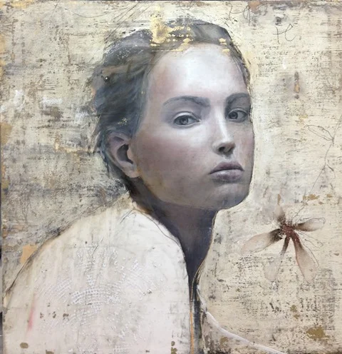 hidell brooks gallery is estactic to introduce our collectors to the amazing paintings by charlotte artist sarah helser. we have been following sarah's work for a very long time and are very excited to finally be showing her intriguing paintings. sarah's subject matter ranges from her exquisite portraits to fascinating animals of all sorts. any subject that sarah sets her mind to gets transformed into mesmerising paintings through her complex process. her three step process evolves oil and acrylic paint, encaustic and then the final layer of epoxy resin mixed with a hardener.