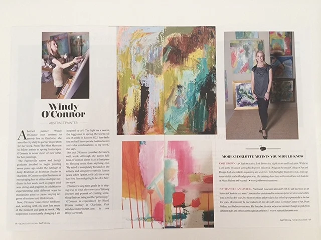 the most recent issue of the qcexclusive magazine shines a spotlight on abstract painter windy o'connor as a charlotte artist producing some of the best works in the south. hidell brooks could not agree more. we have been watching windy paint over the years and her work just keeps getting better and better. no matter what medium whether on paper or canvas windy has mastered the art of painting.