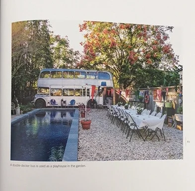 while the house is beautiful the meandering gardens leave visitors enchanted. we remember fondly miranda telling us at dinner one night after one of her openings how she had just parked a double decker bus in her backyard right beside the pool to use as a playhouse. we are hoping to be able to have a long dinner in miranda's fabulous garden and play soon!