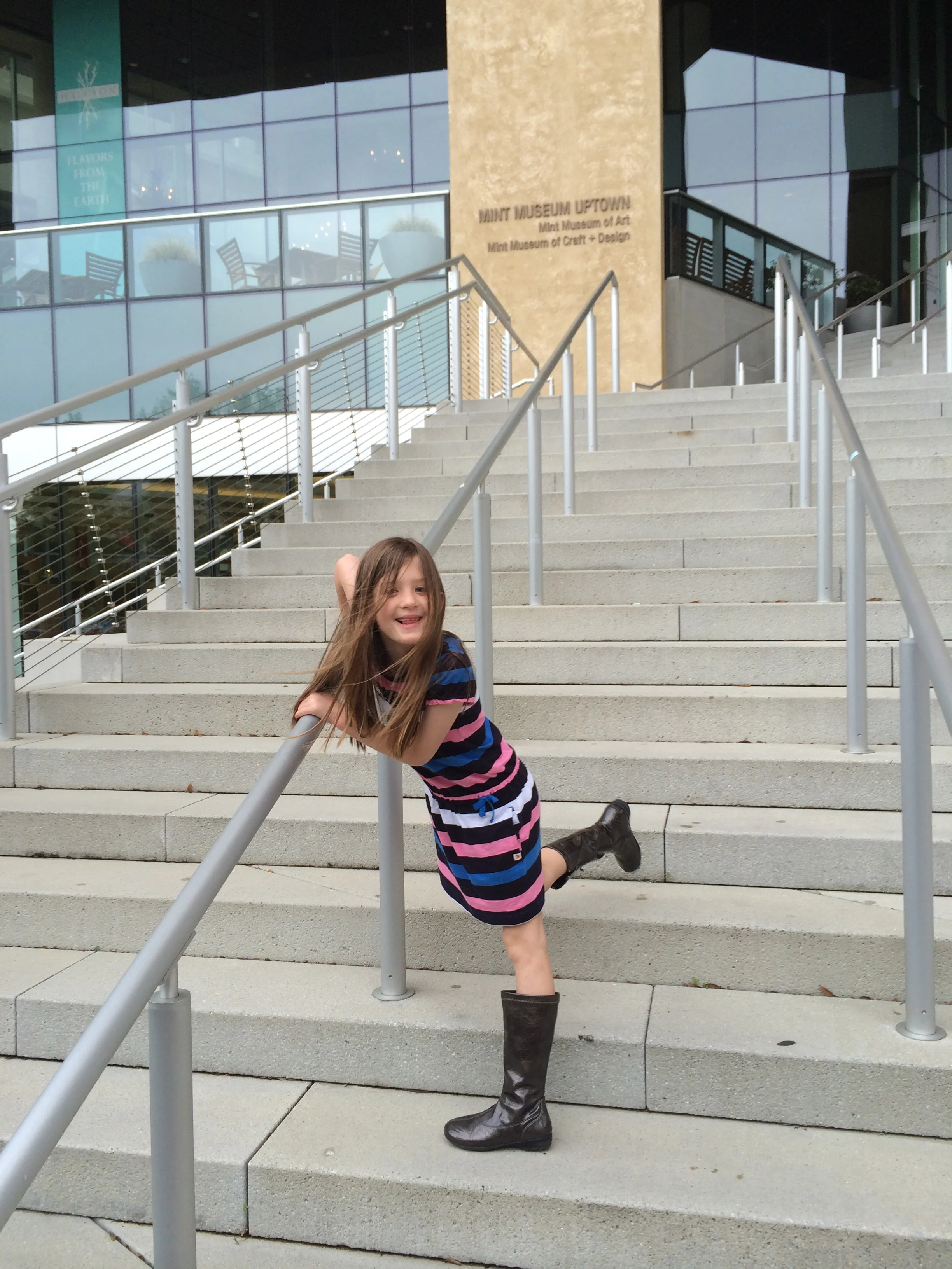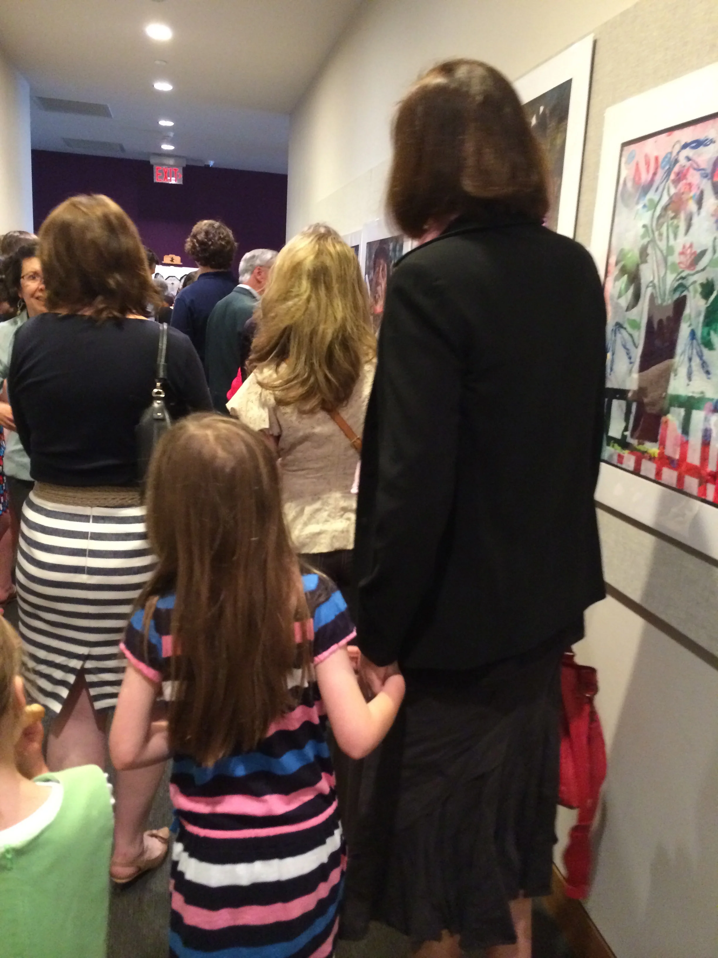 when the actual invitation arrived in the mail for the opening night there was lots of excitement. gallery openings to my child are usually a sign she will not see her mother or bubba (rebecca) for many days but this opening took on new meaning for her. peggy told me she knew why her artwork had been selected for the exhibition. she said she looked around the art room and all the children were doing the same thing and she remembered what i always tell her it is ok to be different. different is good. a big thank you to charlotte latin school and her art teacher for their affirmation to my child.