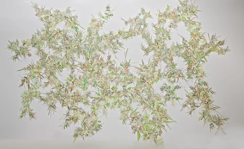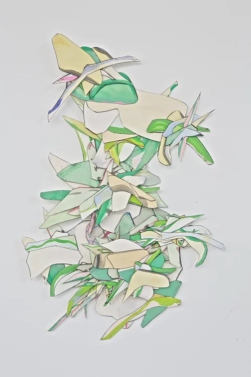 hidell brooks is overwhelmingly excited for the opening of selena beaudry's second solo exhibition color, cut, stripe and mark this friday night may 2nd from 6-8 pm. selena arrived from london earlier this week to start the installation process for her show with the piece de resistance a nine by twelve foot cut paper collage. her solo exhibition includes piles, collages and paintings. selena's piles and collages are intricately woven cut paper painted and marked upon with gouache, acrylic, pencil and marker bound together by archival glue.
