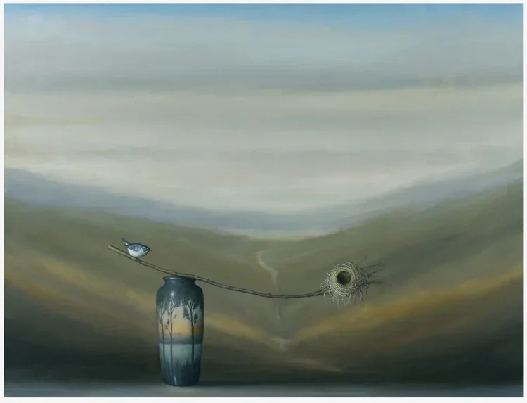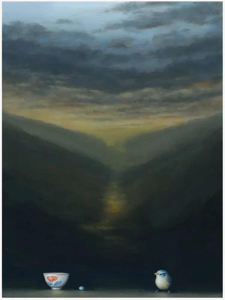 i paint personal refuges in the form of still lives and imagined landscapes - places to visit for solace, meditation and sanctuary. i work intuitively to create a connection between the viewer and the power of place, the web of life, the idea of nature itself. my approach to still life allows me to work with a number of themes that have long interested me and draw me in again and again. thematically i am interested in the interaction between man – and manmade objects – and nature. in a painted still life these ideas collapse on each other - and raise many questions. which is more beautiful – a rural landscape or a chinese vase? which is more alive, which is more still? is the rendering of an egret or a mountainside on porcelain more or less profound than treatment of the same subject on canvas? is a nest a bowl? is a vase a broken egg? and isn’t all of nature anthropomorphized in the sense that, inescapably, man sees nature through man’s eyes?