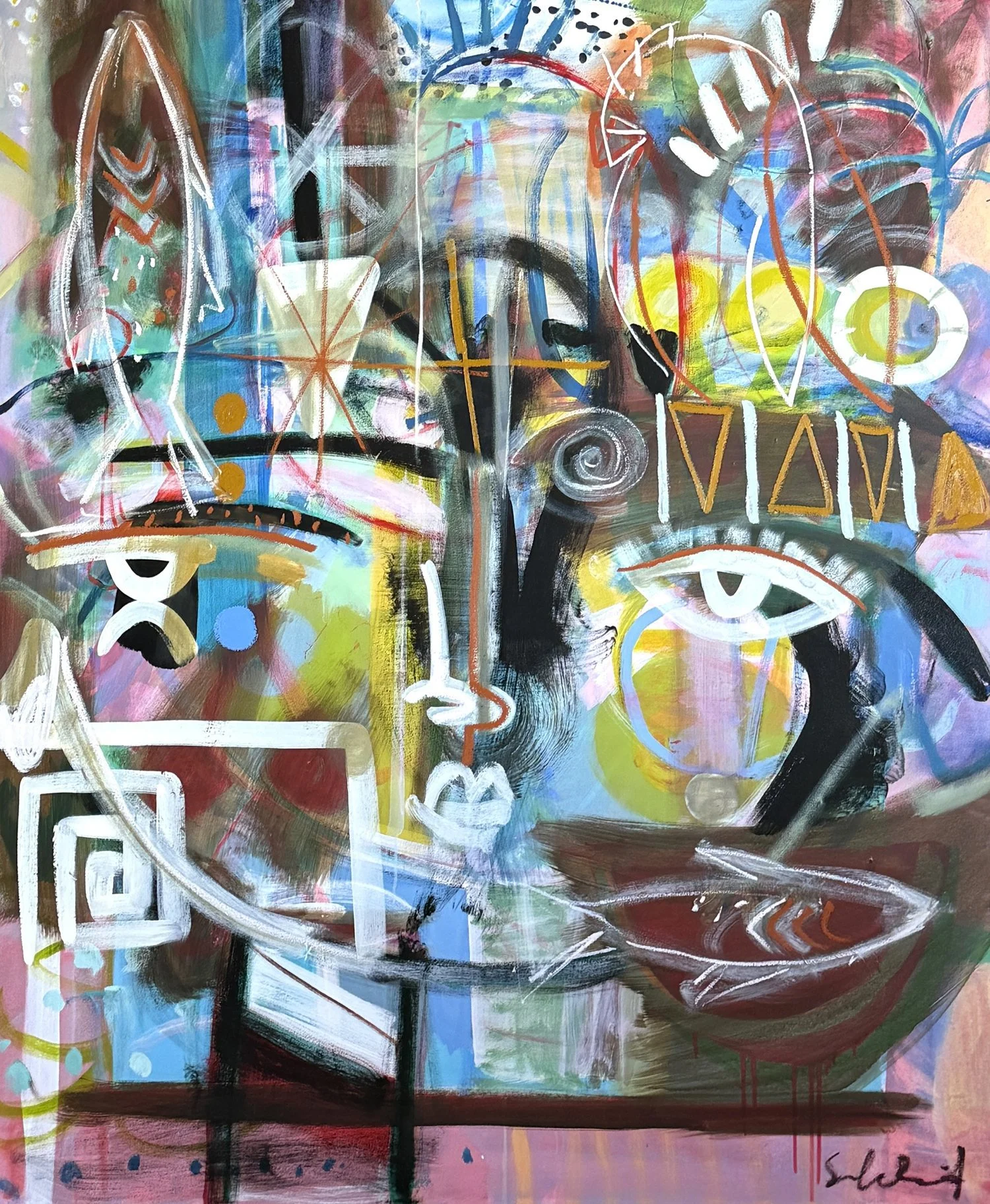 we are so ecstatic to have our POP UP exhibition of new paintings by gallery artist sally king benedict up at the gallery. sally king benedict received her ba in studio art from the college of charleston. sally’s mixed media works range from her classic faces to pure abstraction. she is inspired by her travels and all aspects of her life spill into her work. the energy she creates through her brushstrokes and palette is truly unique. her visual voice is so strong and stays in the viewer’s mind long after seeing the work. sally’s work has been featured in elle decor, house beautiful, domino and southern living. benedict's exuberant style is unmistakable and showcases her expert use of color and dynamic brushwork. sally lives and works in ketchum, idaho.