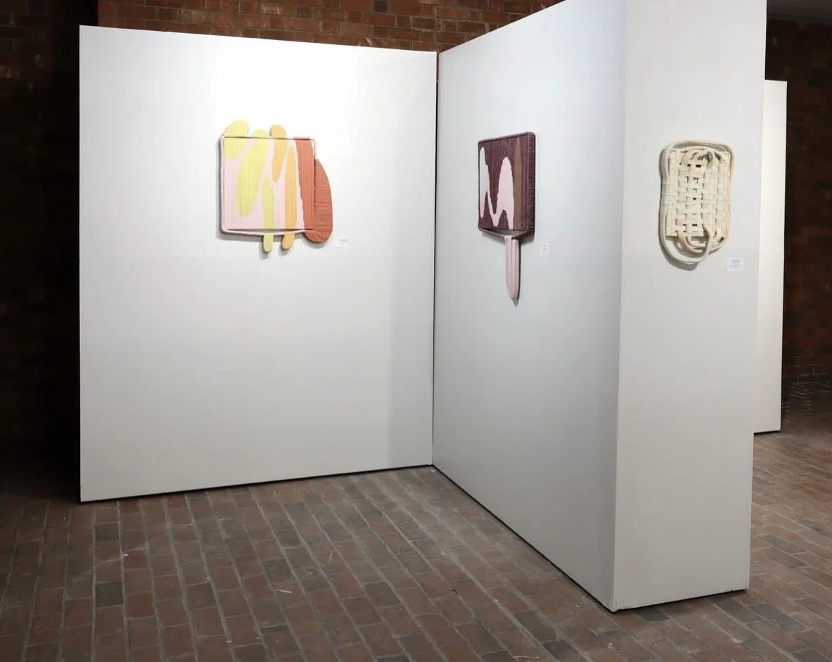 In Fall Out, Jean Alexander Frater’s paintings explore a dynamic relationship between form, structure, and gravity. This exhibition in the Milliken Art Gallery beginning January 8, 2026 will feature new work by the Chicago based artist. Her work is made by painting on canvas, then tearing the painted forms into strips and layering them onto a rectangular frame, reducing the scale by a third. This process allows her to create appendages or bumps that extend the two-dimensional painted forms into sculptural bodies. Fall Out</em challenges notions of containment and perception, as the painted forms extend into the surrounding space, creating a vibrant interplay between structure and the organic movement of the forms. These pieces resonate with the tension of what is held and what is let go, inviting contemplation of their dynamic presence.
